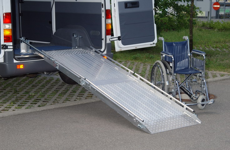 Mit der klappbaren Aluminium Rollstuhlrampe RLK bietet die Firma Altec eine moderne, mit Gasdruckfeder-Technik leicht zu bedienende Rollstuhlrampe für den Einbau in Fahrzeuge an.
